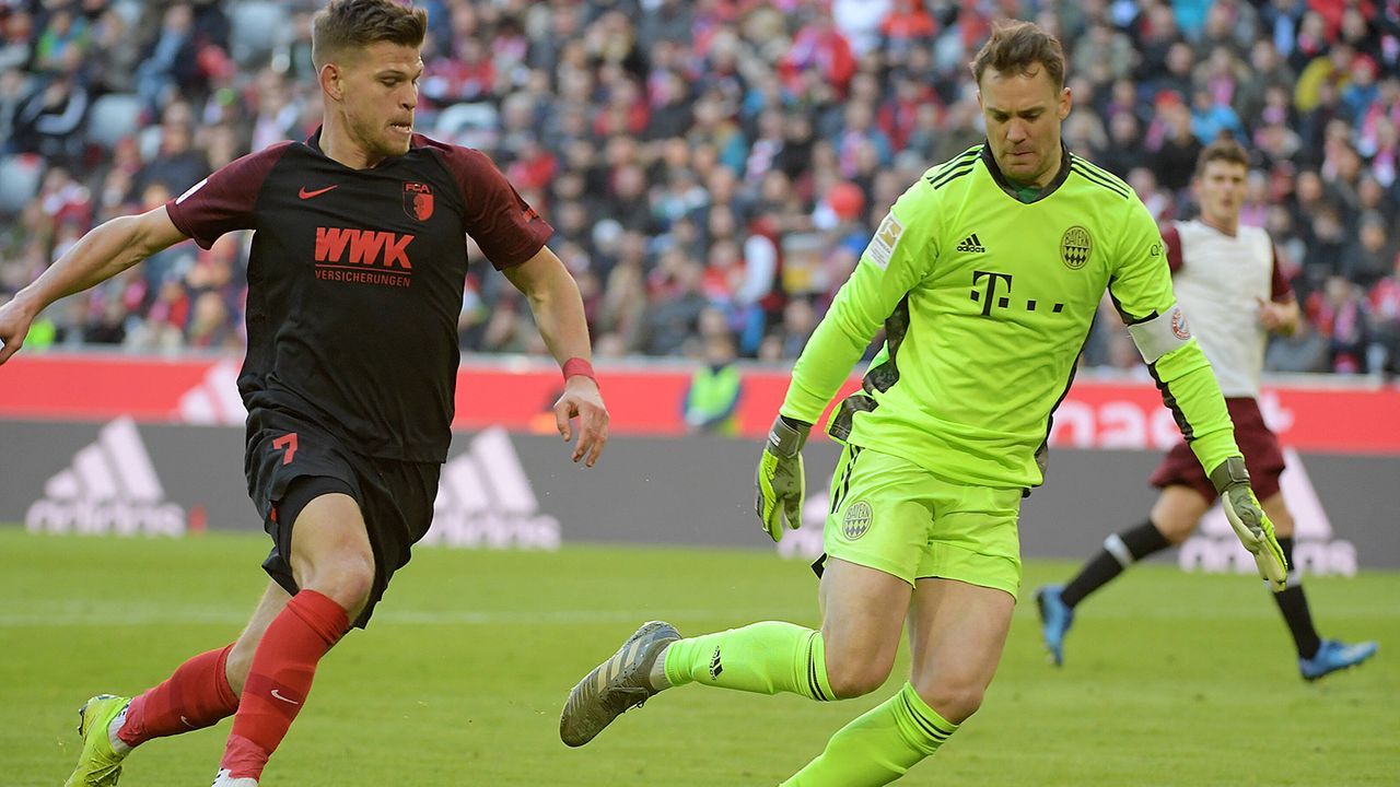 Fc bayern siegt mit ach und krach in augsburg. Jetzt geht es für die 22 protagonisten in die ausverkaufte wwk arena. Nun steht die partie gegen den fc augsburg in der englischen woche an. Hoher ball in den sechzehner, dann nimmt der kolumbianer die kugel mit der brust der fc bayern hat am samstag im titelrennen vorgelegt und borussia dortmund in zugzwang gebracht. Mit dem 2:1 über den sc freiburg hat der fc bayern münchen seinen ersten sieg im neuen jahr eingefahren. Torwart manuel neuer konnte in der bundesliga damit oliver kahns rekord von spielen ohne gegentor einstellen. Übertragen wird das spiel auf dem sender eurosport 2 hd extra. Augsburg will look to keep it tight and hit the visitors on the break, as bayern's defence is as porous as it has been since the early 80s. Jan thielmann schiesst köln in der nachspielzeit zum sieg. Der fc bayern gewinnt ohne innenverteidiger, aber mit einer guten mannschaftsleistung verdient beim fc augsburg mit 3:1. Auch die partie zwischen augsburg und bayern münchen wird dort live zu sehen sein. Key defender jeffrey gouweleeuw and marco richter are both available after suspension. Beim fc augsburg herrscht vor dem spiel gegen den fc bayern unruhe.